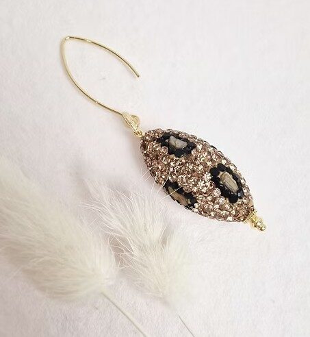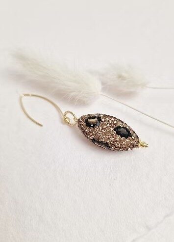 Boucles d’oreilles pendantes à l’attache incurvée et au pendentif en cristal léopard.