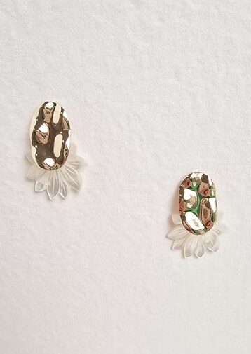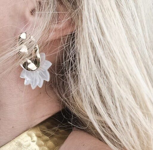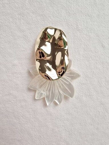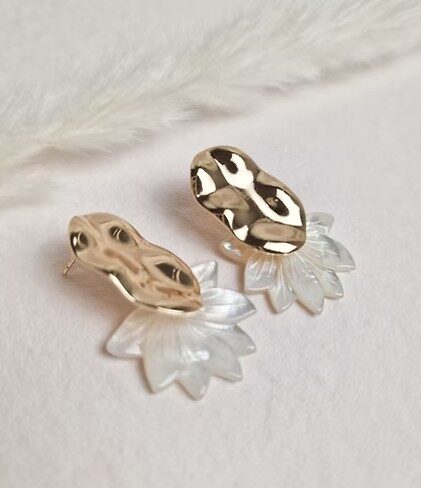Boucles d’oreilles martelées à la jolie fleur de lotus en Nacre naturelle sculptée.